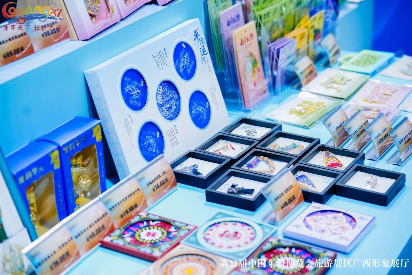 合作洽谈区重点邀请广西旅游发展集团、广西规划馆、广西地图院、湘光织锦等区内12家重点文旅企业参展,集中展示特色旅游产品、文创产品、非遗产品近200款,为企业与观众搭建文创展销、旅游线路洽谈的合作平台,助力文旅产业合作共赢。
