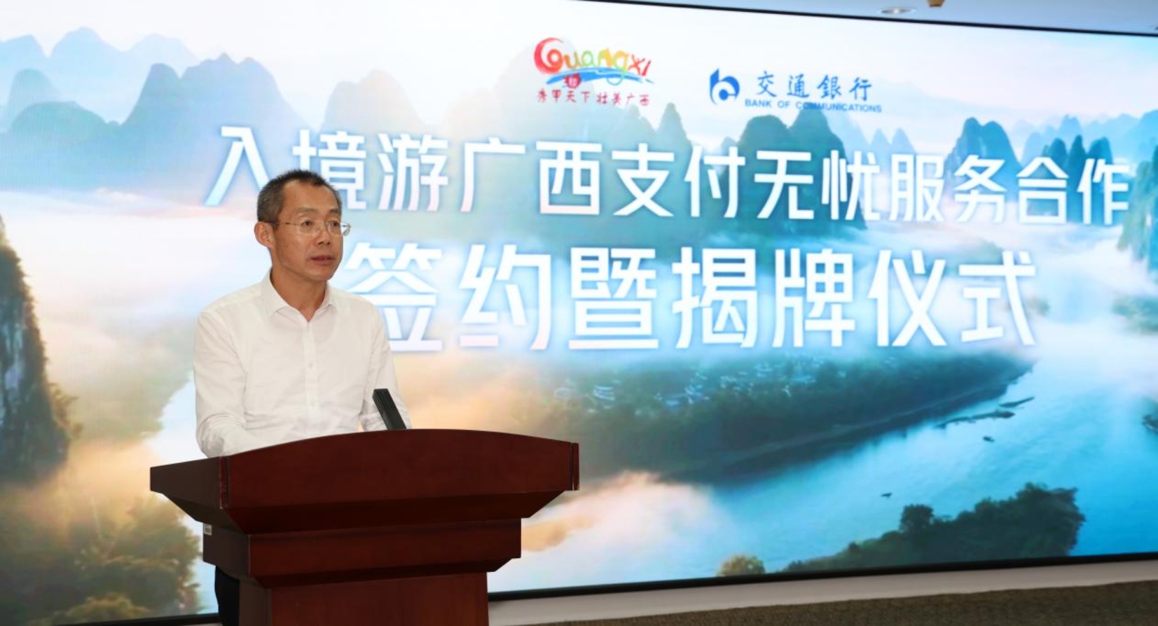 随后,自治区文化和旅游厅与交通银行广西区分行就入境游广西支付无忧服务合作进行签约,并为交通银行桂林分行营业部“GX-TravelEase Bank+”旅游金融服务网点揭牌。