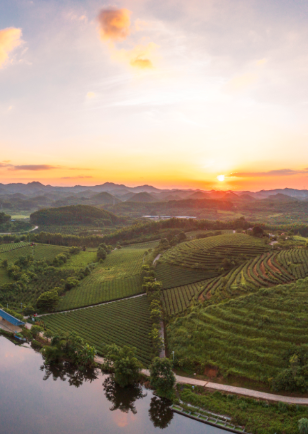 景区内茶山连绵起伏,水流环绕,空气清新宜人。