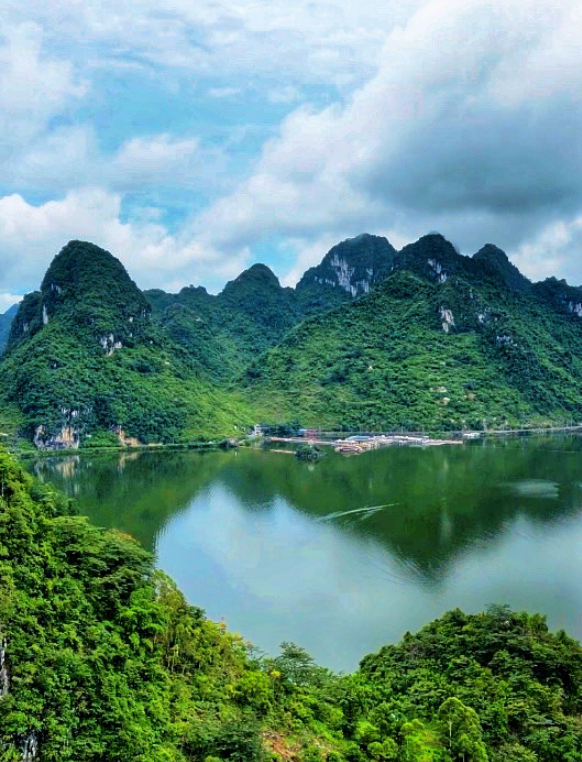 大龙湖景区位于上林县西燕镇,由大龙湖和大龙洞两部分组成,大龙湖被群山环抱,拥有迷人的喀斯特地貌景观。