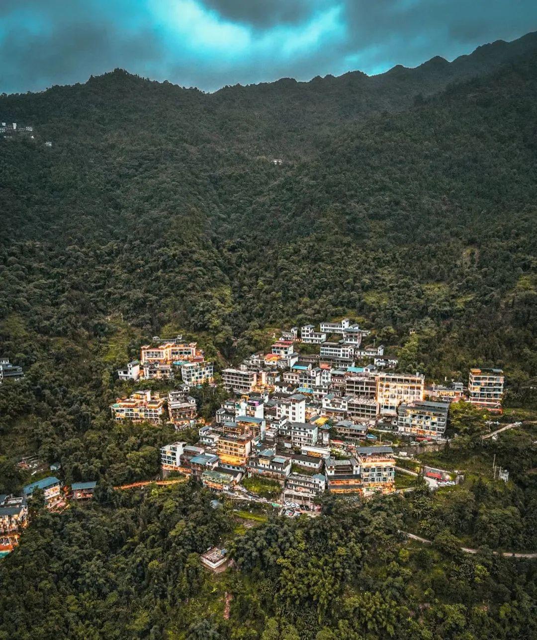 下水源位于南宁大明山山腰处,这里四周都是郁郁葱葱的森林,村民房屋依山而建,错落有致,因远望有几分形似“布达拉宫”而闻名。
