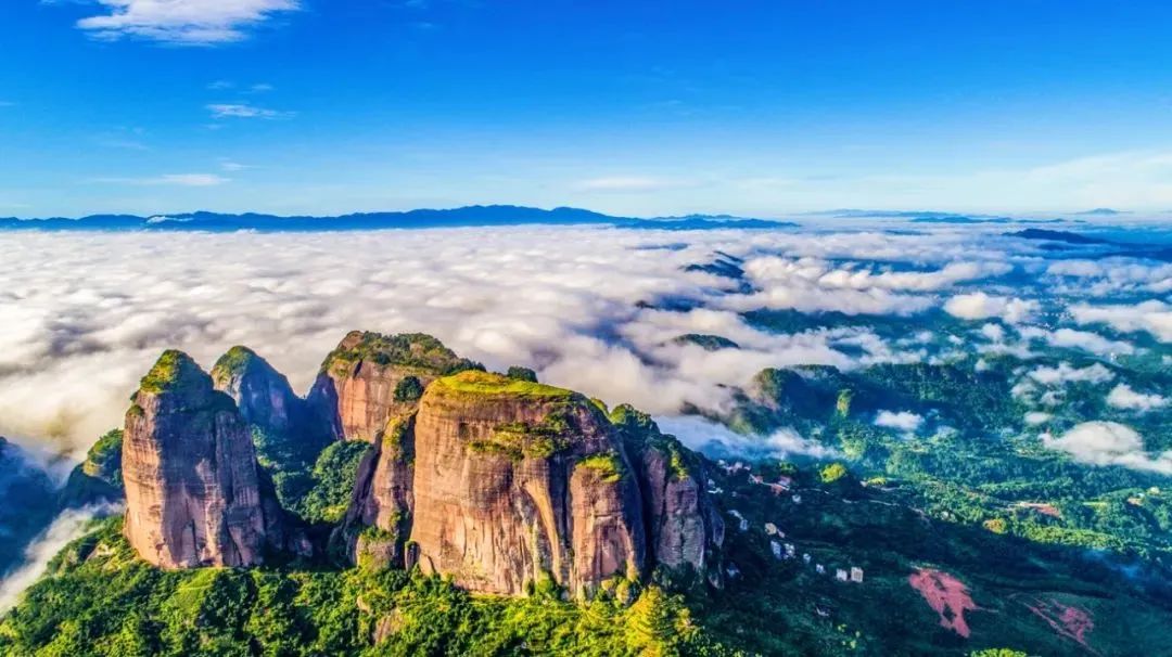登上白石山巅,可见云海滚滚,自高空俯瞰,白云山主峰仿似一只巨大的“神仙脚印”。