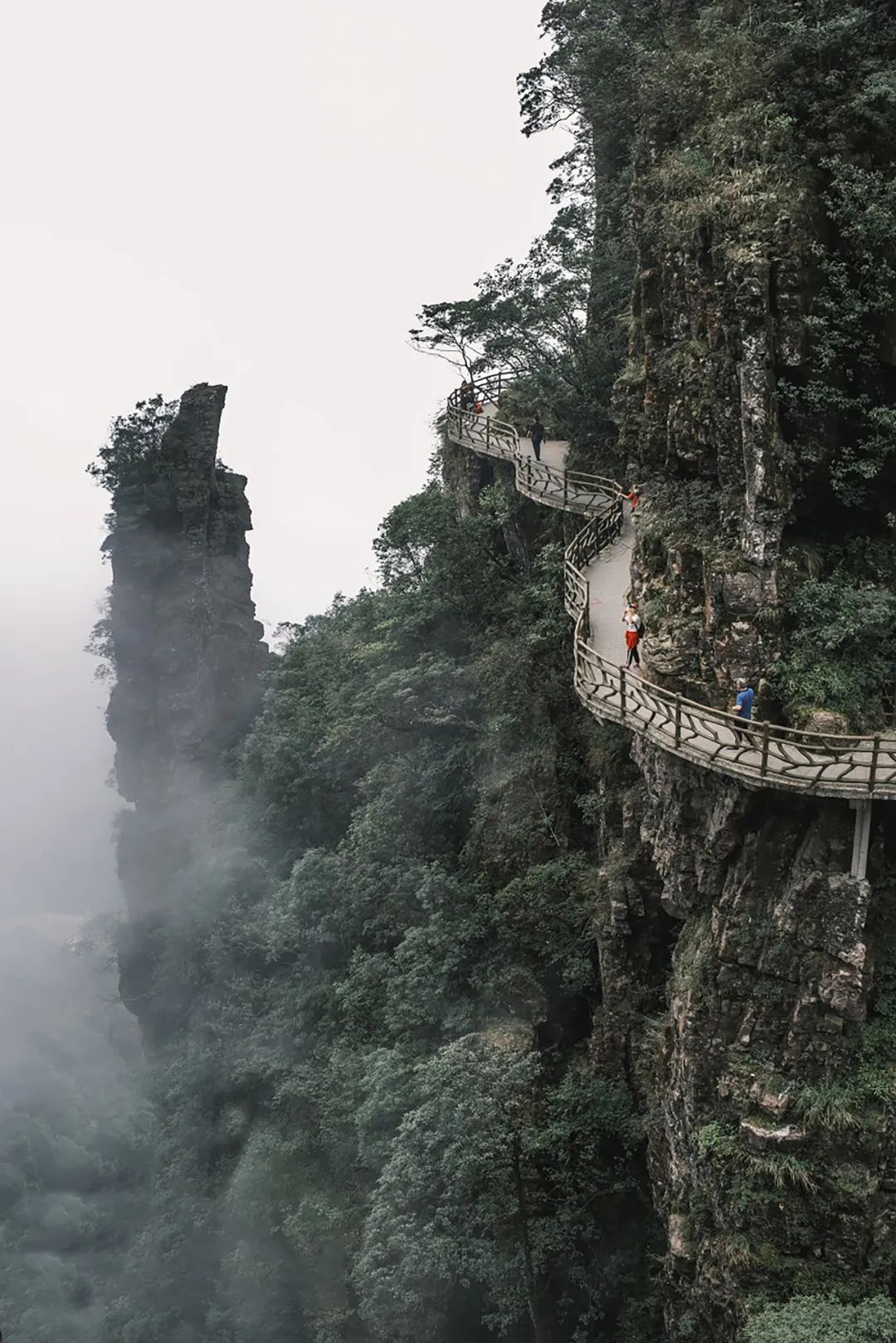 走在山中,肉眼所见的奇峰怪石、深谷幽涧,除了被大自然的鬼斧神工所震撼,在悬崖峭壁上的玻璃栈道同样叫人称奇。