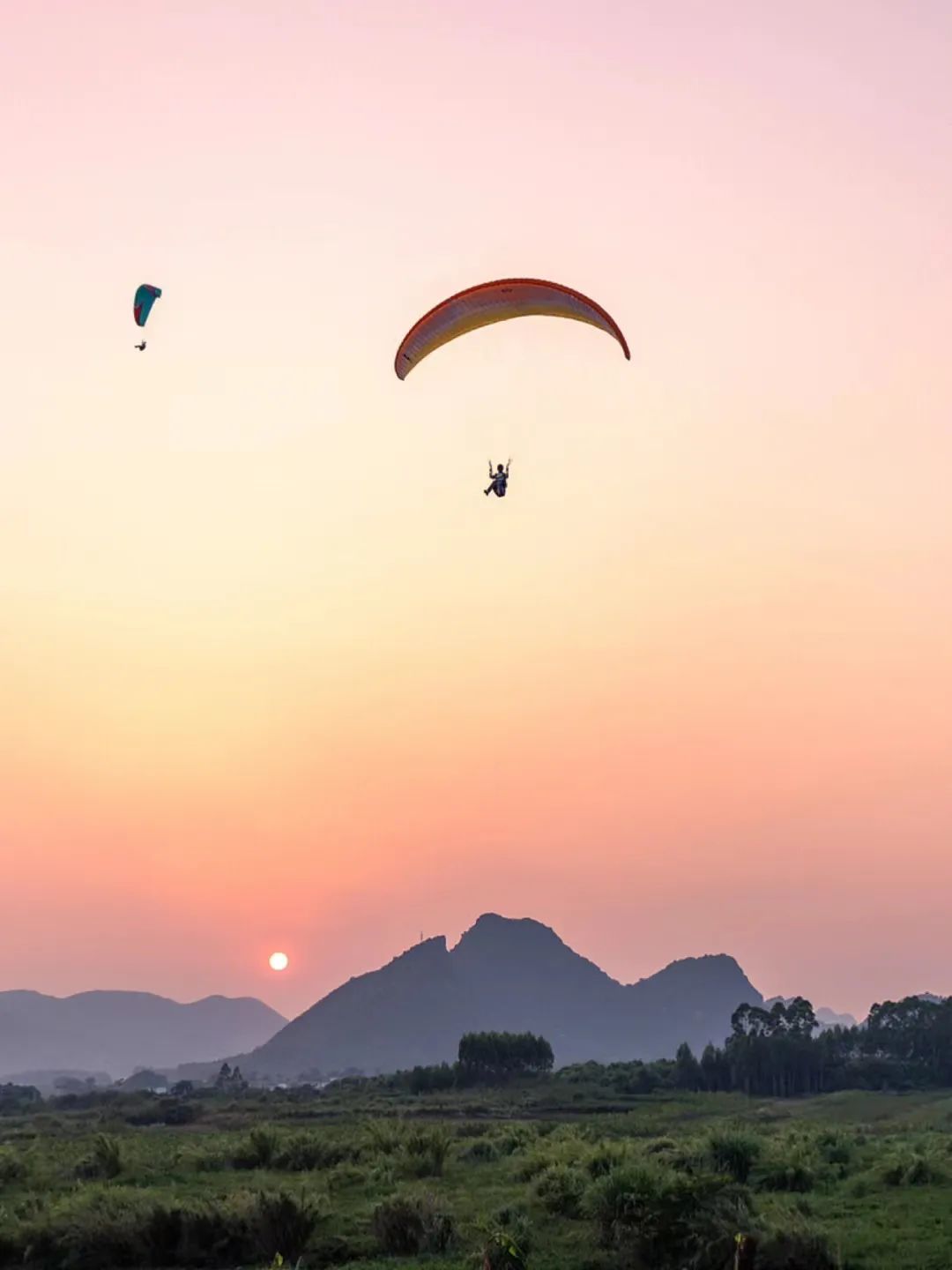 ●去往武鸣县广西大明山滑翔伞基地,体验落日滑翔伞,可入住山顶营地,享受精致露营,夜观大明山星空。