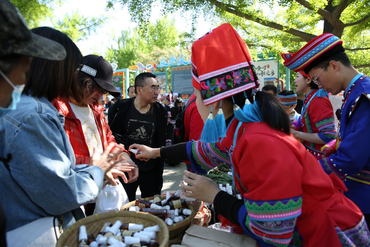 “多好啊,载歌载舞多好啊。”来公园晨练的蒙古族奶奶赵女士看到热闹的侗族非遗歌舞节目时情不自禁地加入到了表演中来,头上戴着在展位上刚买的京族帽子,脚下踩着蒙古族的传统舞步,跟侗族非遗传承人们即兴合演了一首《北京的金山上》。“把我感染了,就一起加入了,广西少数民族载歌载舞,风景又那么好,多好啊!”体验完非遗展示、展演后,赵女士忍不住发出了连连赞叹,并和侗族非遗传承人们约定有机会一定到广西游玩。