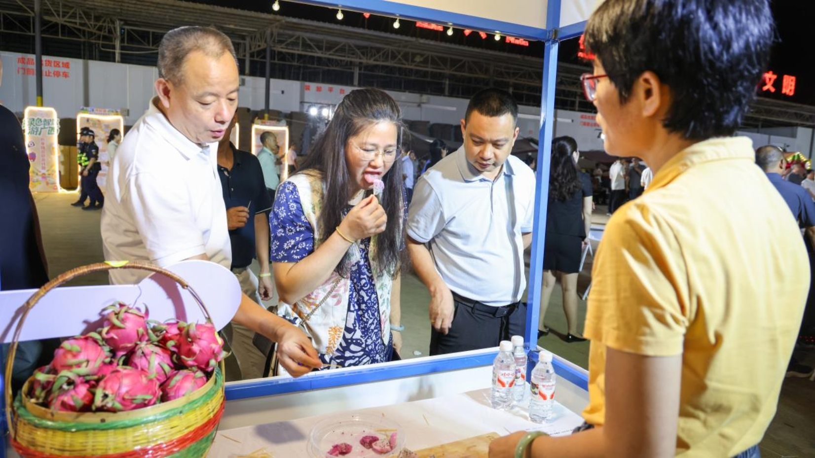 活动现场设有丰富多样的主题区域。火龙“果王”展、火龙音乐派对、火龙集合站(主题游园会)、比亚迪新能源车展等,吸引大批嘉宾和游客沉浸式体验农文旅融合发展的丰硕成果。